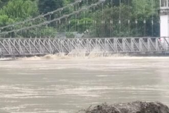 Himachal Floods – उच्चजलप्रलयस्तरात् उपरि सतलुजनद्याः जलस्तरः, शिमलानगरस्य तत्तापानीस्थाने सेतुं स्पृष्टवान्