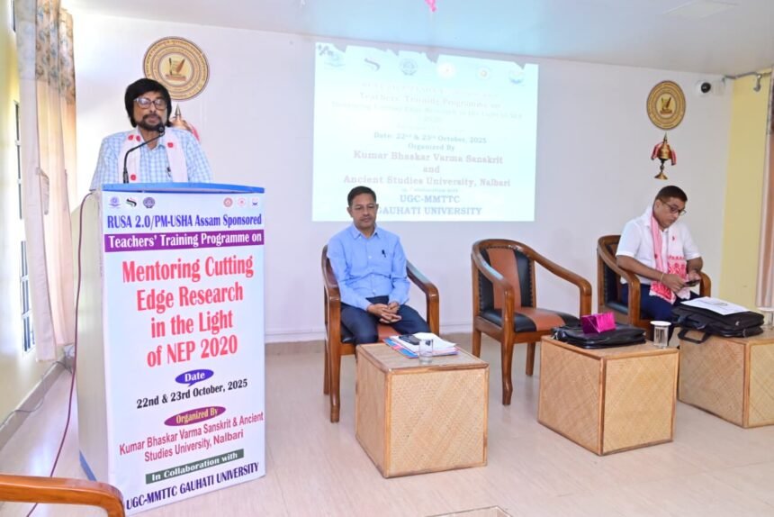 अक्टोबरमासस्य २२-२३ दिनाङ्कयोः नलबारी-स्थिते कुमारभास्करवर्मसंस्कृत-पुरातनाध्ययनविश्वविद्यालये विश्वविद्यालयस्य एवं गौहाटी-विश्वविद्यालयस्य MMTTC इत्यस्य च सहयोगेन सम्पन्नं द्विदिवसीयं शिक्षक-प्रशिक्षण-कार्यक्रमम् । अस्य कार्यक्रमस्य विषयः आसीत् — “राष्ट्रीय-शिक्षा-नीतिः २०२० इत्यस्य आलोके अग्रगण्य-अनुसन्धानस्य मार्गदर्शनम्।”