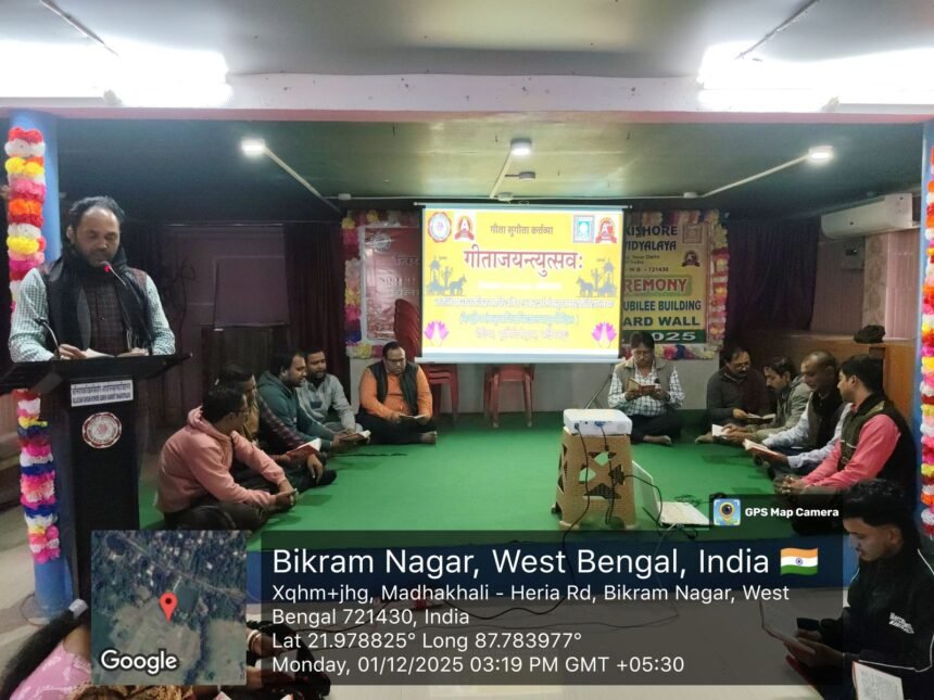 GITA JAYANTI 2025 – कलियाचकविक्रमकिशोर-आदर्शसंस्कृतमहाविद्यालये साडम्बरं गीताजयन्त्युत्सवः परिपालितः