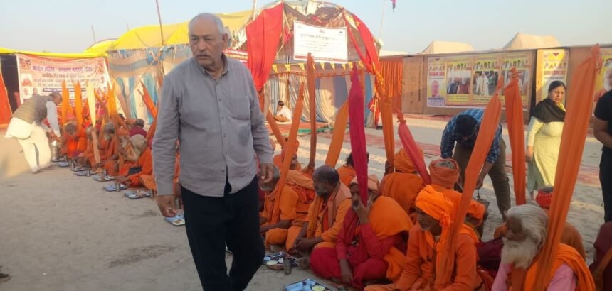 समाजसेवकः श्री रमेशचन्दशर्मा कुम्भावसरे भोजनसेवायाम्
