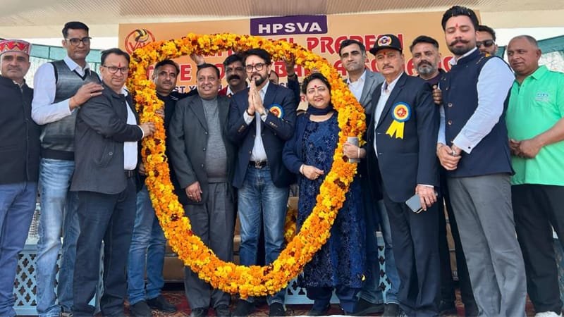 हिमसंस्कृतवार्ता:- काङ्गड़ा। ‘हिमाचलप्रदेश- राज्य- वॉलीबॉलसङ्घेन’ काङ्गड़ा- जनपदस्य शाहपुर-क्रीडाङ्गणे ‘प्रथम- यूथ- वॉलीबॉल- चैम्पियनशिप’ तथा ‘मिनी हॉफ मैराथन’ इत्यस्य भव्यम् आयोजनं कृतम्। अस्मिन् कार्यक्रमे यूनाम् उत्साहः, अनुशासनं, क्रीडाभावना च दर्शनीया आसीत्। कार्यक्रमस्य मुख्यातिथिरूपेण हमीरपुर-लोकसभाक्षेत्रस्य सासंदः पूर्वकेन्द्रीयमन्त्री च अनुरागसिंहठाकुरः उपस्थितः आसीत्। विशिष्टातिथिरूपेण वॉलीबॉलसङ्घस्य राष्ट्रियाध्यक्षः पूर्वमन्त्री च वीरेंद्रकंवरः अपि स्वकीयां गरिमामयीं उपस्थितिं दत्तवान्। स्वकीये सम्बोधने अनुरागसिंहठाकुरः युनः ‘मादकद्रव्यसेवनम्’ (नशा) सदृशात् सामाजिक-दोषतः दूरे स्थातुं आह्वानं कुर्वन् अवदत् यत्- “क्रीडाः यूनां व्यक्तित्व- निर्माणस्य सशक्तं माध्यमं वर्तन्ते।”