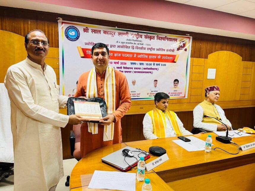नवदेहली-: श्रीलालबहादुरशास्त्री-राष्ट्रिय-संस्कृत-विश्वविद्यालयस्य ज्योतिषविभागेन सद्यः “भारतीयज्ञानपरम्परायां ज्योतिषशास्त्रस्य उपादेयता कालगणना च” इति विषयमधिकृत्य एकदिवसीया राष्ट्रियसङ्गोष्ठी समायोजिता। अस्मिन् कार्यक्रमे देशस्य विभिन्नविद्वद्भिः भारतीयप्राचीनविज्ञानस्य समयगणनायाश्च प्रासङ्गिकताविषये स्वविचाराः प्रस्तुताः। अस्यां संगोष्ठ्यां गोरखनाथसंस्कृतमहाविद्यालयः, नाहनम् इत्यस्याः संस्थायाः ज्योतिषविभागस्य आचार्येण डॉ.ज्ञानेश्वरशर्मणा मुख्यवक्तृरुपेण स्वविचाराः प्रस्तुताः। सङ्गोष्ठ्यां सम्बोधयन् तेनोक्तं यत्— भारतीयज्ञानपरम्परायां समयस्य सूक्ष्मविश्लेषणं ज्योतिषशास्त्रस्य च भूमिका अनन्या वर्तते। तेन प्राचीनग्रन्थानां साक्ष्यैः कालगणनायाः वैज्ञानिकपक्षाः विस्तरेण प्रतिपादिताः।