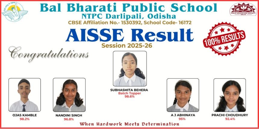 एनटीपीसी टाउनशिप-स्थितस्य बालभारती पब्लिक विद्यालयस्य (BBPS) छात्राः २०२६ वर्षस्य कक्षा-दशमी (CBSE) परीक्षायां अत्युत्कृष्टं परिणामं प्राप्तवन्तः। एषः परिणामः विद्यालयस्य शैक्षिक-परम्परां पुनः उज्ज्वलितवान्।